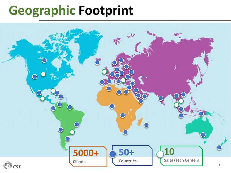 Geographic Footprint 19 50+ Countries 5000+ Clients 10 Sales/Tech Centers