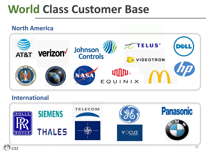 World Class Customer Base 20 North America International
